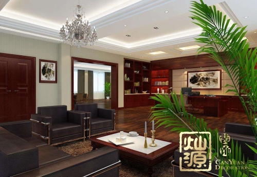 要設置一會喝茶的區域,供總經理辦公之余喝喝茶放松放松。可以放置幾張簡雅的沙發茶幾,也可以做的奢華一點,視總經理品性要求而行。