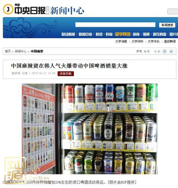 《中央日報》中文網的報道說,韓國CU便利店對最近五年各國啤酒的銷量比例進行分析后發現,一直穩居銷量榜第一名的日本啤酒銷量有所下降,而中國啤酒的銷量則大幅上升,成了市場的新興“強者”,這與麻辣燙在韓受歡迎不無相關。↓