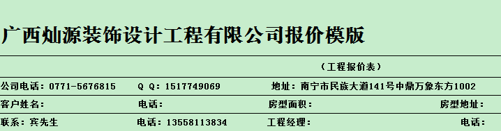 南寧辦公設計基本報價模版參考