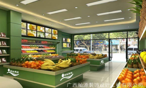 南寧裝飾公司發現布置非常重要:水果店賣水果人家當然先看門面,較好做到簡潔、格調新穎、色彩和諧,展示形象,燈箱和門面海報這個是可以突破的重點。