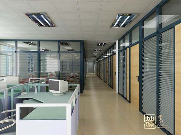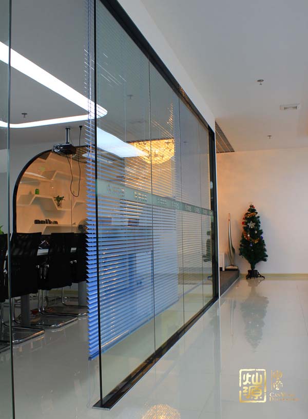 3.透明玻璃+百葉組合:俗稱百葉隔斷。室內(nèi)的光線和室內(nèi)的隱秘性和開放性都可以一手掌握。較常用在走道、財(cái)務(wù)、經(jīng)理、懂事辦公室,效果更佳。
